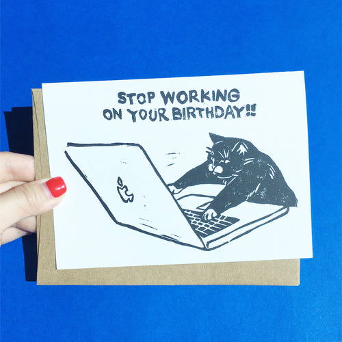 Stop Working On Your Birthday Cat Card