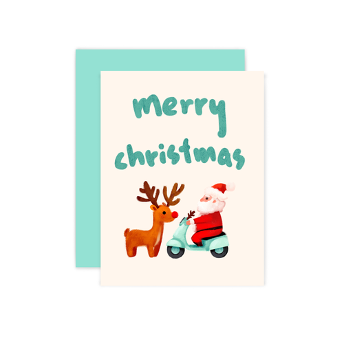 Vespa Santa and Reindeer Holiday Card