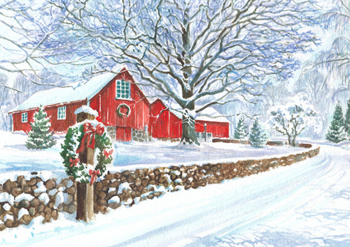 Snowy Red Barn Boxed Cards - Set of 10